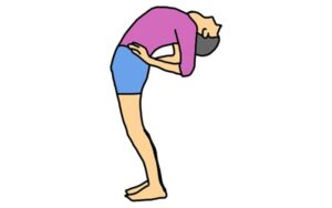 Stand straight and gently bend your waist backward, keeping your hands on your waist or raised upward.
